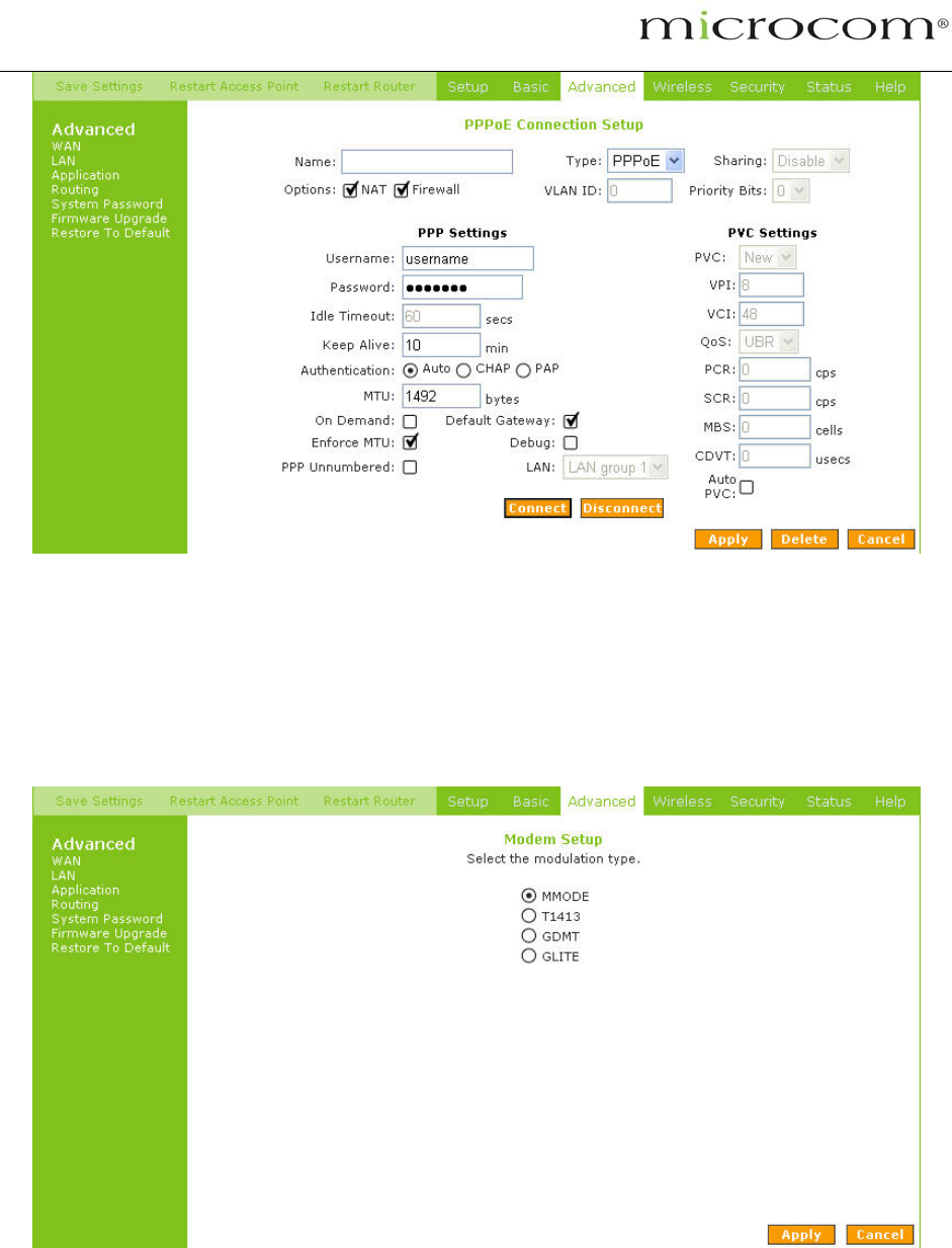 bring up the modem setup screen. Leave the default value if you are unsure or the DSL/ISP did not